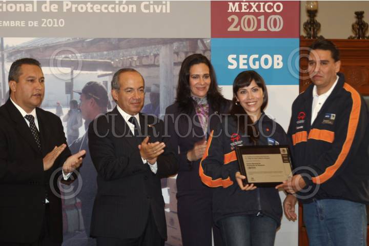 MÉXICO D.F., 19SEPTIEMBRE2010.- El presidente Felipe Calderón y su esposa Margarita Zavala durante la ceremonia conmemorativa del Día Nacional de Protección Civil que se realizo en el Salón de la Tesorería en Palacio Nacional. FOTO: RODOLFO ANGULO/CUARTOSCURO.COM