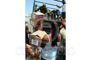 VERACRUZ, VERACRUZ, 20SEPTIEMBRE2010.- Elementos del Ejercito Mexicano, repartieron despensas a antes de que llegara el Presidente Felipe Calderón a las zonas afectadas. FOTO: JOSE CANDELARIO/CUARTOSCURO.COM