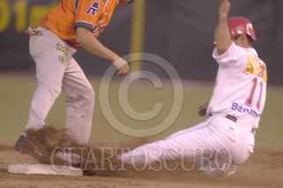 México, D.F. 02 ABRIL 2004.- El segunda base de los Leones de Yucatán al momento de porducir el error con el que los diablos pusieron el marcador a favor de tres carreras a una en el primer juego de la serie entre Leones de Yucatán y de los Diablos Rojos del México. FOTO: Iván Stephens/CUARTOSCURO.COM