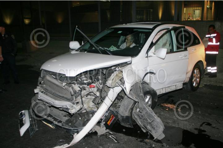MÉXICO, D.F., 21SEPTIEMBRE2010.- Enrique Fonti, antropólogo e investigador, sufrió un accidente sobre el Eje 5 Sur San Antonio y la avenida Alta Tensión, al estrellarse contra un muro de contención por lo que fue puesto a disposición ante las autoridades correspondientes al encontrarse con aliento alcohólico. FOTO: LUZ ACEVEDO/CUARTOSCURO.COM