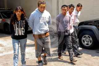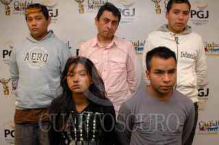 MÉXICO, D.F., 21SEPTIEMBRE2010.- Cuatro hombres y una mujer, fueron presentados ante los medios de comunicación en las instalaciones de la PGJDF por su presunta participación en el delito de asalto en la zona de Cuajimalpa. FOTO: CUARTOSCURO.COM