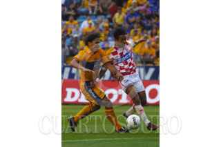 Monterrey, Nuevo León 03 ABRIL2004.- Antonio Sancho (tigres) Said Gonzalez (tecos)disputan un balón en el juego de la jornada 13 del torneo de clausura 2004 en donde los tigres vencieron 2 a uno a los tecos. FOTO: Jorge López/CUARTOSCURO.COM