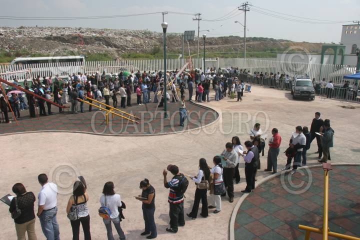 CIUDAD NEZAHUALCOYOTL., 23SEPTIEMBRE2010.- Miles de personas desempleadas asistieron la feria del empleo organizado por el ayuntamiento de Ciudad Neza, entre las actividades laborales más demandadas se encuentran las ventas por teléfono, custodios y elementos para corporaciones policíacas. FOTO: SAÚL LÓPEZ/CUARTOSCURO.COM