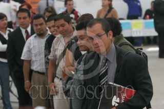 CIUDAD NEZAHUALCOYOTL., 23SEPTIEMBRE2010.- Miles de personas desempleadas asistieron la feria del empleo organizado por el ayuntamiento de Ciudad Neza, entre las actividades laborales más demandadas se encuentran las ventas por teléfono, custodios y elementos para corporaciones policíacas. FOTO: SAÚL LÓPEZ/CUARTOSCURO.COM