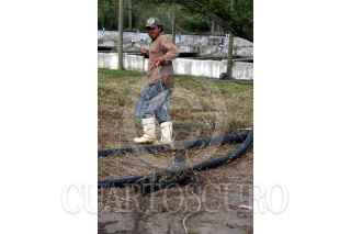 CD. CARDEL, VERACRUZ, 23SEPTIEMBRE2010.- Al menos un centenar de cocodrilos de la especie "Morelleti" están siendo recapturados ya que por el desbordamiento del río La Antigua salieron de sus estanques donde son reproducidos en la UMA del rancho El colibrí. A decir de los encargados del lugar estos animales representan un peligro ya que aun se encuentran en la zona de pantanos del lugar mismo que cuenta con veinticinco hectáreas donde aún se mantienen estos animales. FOTO: JOSÉ CANDELARIO/CUARTOCURO.COM