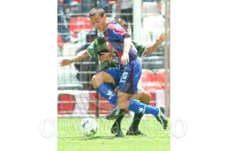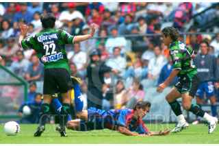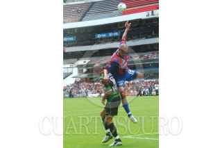 México D.F 04 Abril 2004.- Luis Gabriel Rey jugador de Los Potros del Atlante se disputa el balón con un jugador del Santos Lagunas, durante el encuentro que de la fecha 13 del Campeonato Clausura 2004 disputado en el Estadio Azteca. FOTO: Eunice Adorno/CUARTOSCURO.COM