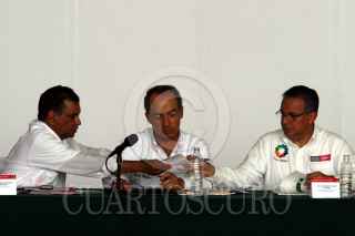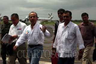 VERACRUZ, VERACRUZ, 24SEPTIEMBRE2010.- Fidel Herrera, Gobernador del estado junto a Felipe Calderon, Presidente de México y Heriberto Felix Guerra, Secretario de Desarrollo Social durante un recorrido por municipios afectados de la zona centro del estado de Veracruz FOTO: JOSE CANDELARIO/CUARTOSCURO.COM