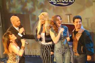 México D.F 04 Abril 2004.- Veronica Castro conductora del Big Brother convive con exhabitantes de la casa, durante el domingo de expulsión. FOTO: Eunice Adorno/CUARTOSCURO.COM