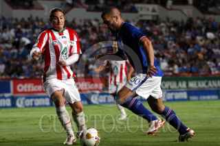 AGUASCALIENTES, AGUASCALIENTES, 24SEPTIEMBRE2010.- Los Rayos del Necaxa ganaron 2 goles por 1 frente a la Maquina Celeste del Cruz Azul en el partido de la jornada 9 del torneo Apertura 2010 del futbol mexicano. FOTO: ADOLFO VALTIERRA/CUARTOSCURO.COM