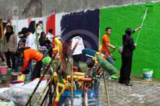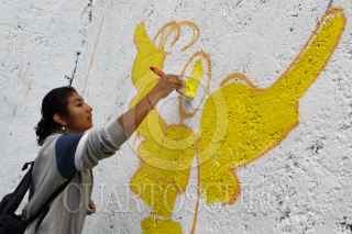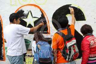MÉXICO, D.F., 25SEPTIEMBRE2010.- Decenas de jóvenes realizaron un mural para conmemorar la celebración del X Aniversario de la Ley de las y los Jóvenes y los 14 derechos de las y los jóvenes en la calle de Eje 1 Norte José María Alzate y Mariano Azuela en la colonia Buenavista. FOTO: RODOLFO ANGULO/CUARTOSCURO.COM