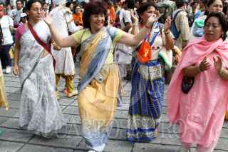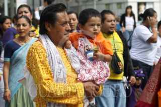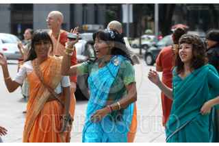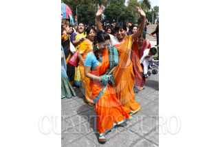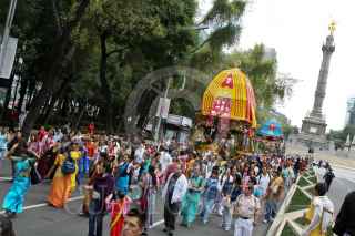MÉXICO, D.F., 25SEPTIEMBRE2010.- Miembros de la comunidad Krishna cantan y bailan Mantras acompañados por sus deidades en una procesión que partio de la glorieta del Angel de la Independencia hacia el Parque España en donde celebraron un festival. FOTO: RODOLFO ANGULO/CUARTOSCURO.COM