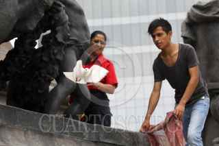 MÉXICO, D.F., 25SEPTIEMBRE2010.- El Grupo Gente por la Defensa Animal intento rescatar a un grupo de palomas que fueron soltadas durante el desfile del 15 de septiembre durante las fiestas del Bicentenario, pues estos animales se encuentran enfermos y con parásitos. FOTO: RODOLFO ANGULO/CUARTOSCURO.COM