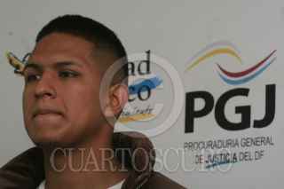 MÉXICO, D.F., 26SEPTIEMBRE2010.- Luis Ángelo Ramirez Vazquez, alias el "Angelo" fue presentado en las Instalaciones de la PGJDF por su presunta participación en el delito de homicidio por lo que en las próximas horas sera consignado al reclusorio Preventivo Varonil Oriente. FOTO: ENRIQUE ORDÓÑEZ/CUARTOSCURO.COM