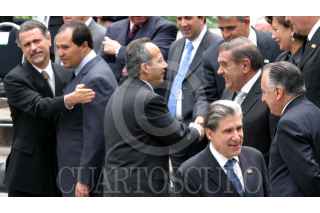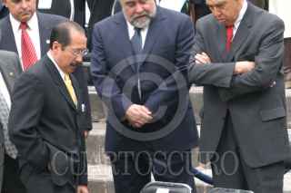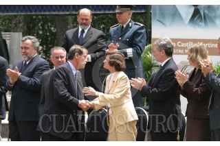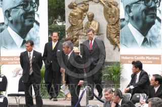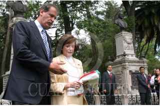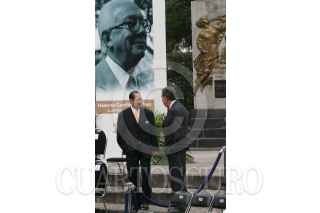 México, D.F. 05 ABRIL 2004.- Vicente Fox, primer mandatario y María Teresa Juárez viuda de Castillo, se retiran del monumento de Heberrto Castillo, al término de la ceremonia de inhumación en el panteón Dolores. FOTO: Sandra Perdomo/CUARTOSCURO.COM