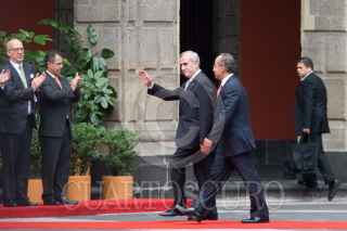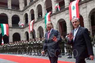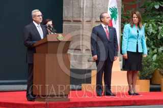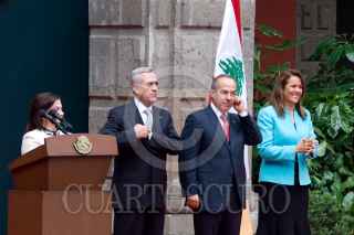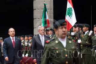 MÉXICO, 27SEPTIEMBRE2010.- Felipe Calderón Hinojosa, Presidente de México, presidio la ceremonia de bienvenida oficial a Michel Sleiman, Presidente de la Republica del Líbano, esto en el Palacio Nacional. FOTO: GUILLERMO PEREA/CUARTOSCURO.COM