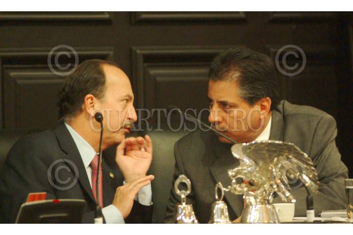 México D.F 05 Abril 2004.- Los senadores panistas, Diego Fernández de Cevallos, Cesar Jauregui y Fauzi Handam durante la sesión del senado. FOTO: Eunice Adorno/CUARTOSCURO.COM