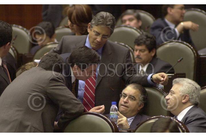 México, D. F. 05 ABRIL 2004.- Los diputados Oscar Levi Coppel y Manuel Ignacio López Villareal, de la comisión de economía presentaron un proyecto de ley para evitar las clonaciones de tarjetas de crédito. FOTO: Iván Stephens/CUARTOSCURO.COM