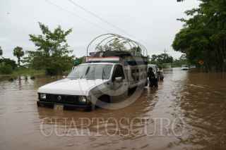 JALAPA, TABASCO, 27SEPTIEMBRE2010.- El paso de la tormenta tropical Matthew deja incomunicada la carretera federal Jalapa-Tacotalpa. En donde los habitantes de ambos municipios intentan ponerse a salvo utilizando vehículos de todo tipo de tamaño, pasando sobre la cinta asfaltica inundada hasta los dos metros de profundidad. FOTO: MARCO POLO GUZMÁN HERNÁNDEZ/CUARTOSCURO.COM