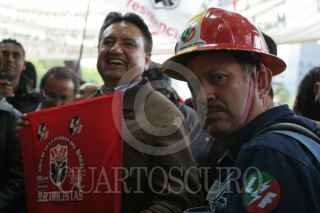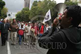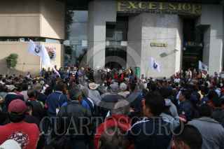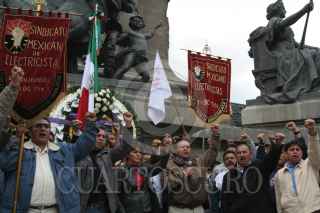 MÉXICO, D.F., 27SEPTIEMBRE2010.- Integrantes del Sindicato Mexicano de Electricistas, realizaron una marcha que partió del Ángel de la Independencia con rumbo las oficinas del periódico Excelsior ubicadas en Paseo de la Reforma a la altura del Caballito con el fin de exigir el derecho de replica en dicho medio de comunicación. FOTO: ENRIQUE ORDÓÑEZ/CUARTOSCURO.COM