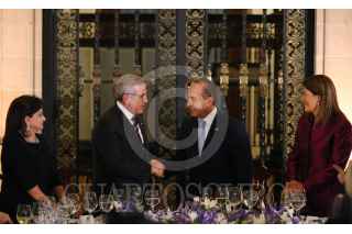 MÉXICO, D.F., 27SEPTIEMBRE2010.- Michel Sleiman, presidente de la República del Libano y su esposa Waffa Sleiman, durante una cena en honor por su visita de Estado, quienes fueron recibidos por el presidente de México, Felipe Calderón Hinojosa, y su esposa Margarita Zavala. Esto, se realizó en el Salón Minería del Palacio Nacional. FOTO: FRANCISCO SANTOS/CUARTOSCURO.COM