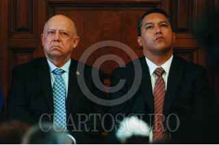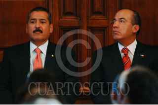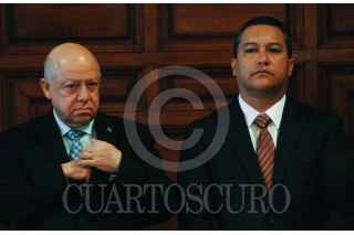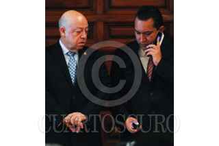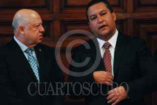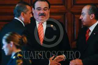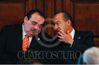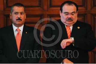 MÉXICO, D.F., 28SEPTIEMBRE2010.- Manlio Fabio Beltrones, presidente de la mesa directiva del Senado de la República y Jorge Carlos Ramírez Marín, presidente de la Cámara de Diputados, durante la ceremonia de Conmemoración del CLXXXIX Aniversario del Acta de Independencia, en el salón embajadores del Palacio Nacional hoy en la mañana. FOTO: MISAEL VALTIERRA/CUARTOSCURO.COM