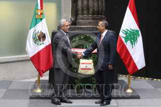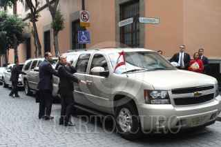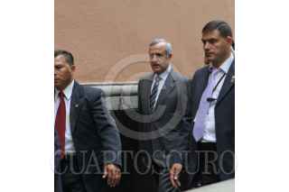 MÉXICO, D.F., 28SEPTIEMBRE2010.- Escoltas encargados de la seguridad del presidente del Líbano Michel Sleiman, aguardan la salida del mandatario quien fue invitado de honor en la sesión de la Cámara del Senado, esto sobre la calle de Donceles en el Centro Histórico. FOTO: MOISÉS PABLO/CUARTOSCURO.COM