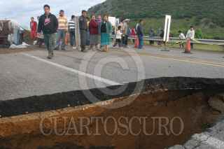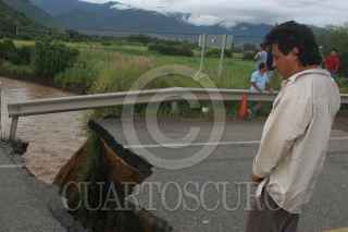 TLACOCHAHUAYA, OAXACA, 28SEPTIEMBRE2010.- Centenares de vehículos que se dirigían al municipio Santa María Tlahuitoltepec, donde la madrugada de hoy un alud sepultó a una comunidad, se quedaron varados debido a que el puente de Macuilxochitl se partió en dos debido al fuerte caudal que cruza el rio y al mal tiempo que impera en la zona. FOTO: SAÚL LÓPEZ/CUARTOSCURO.COM