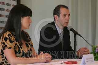 MÉXICO, D.F., 29SEPTIEMBRE2010.- Cristina Ruíz de Velasco y Gustavo Cantú, directora de Relaciones Institucionales y Vicepresidente Corporativo de Nextel, respectivamente; ofrecieron una conferencia de prensa a los medios de comunicación para dar a conocer la postura de la empresa con respecto al desarrollo del proceso de adjudicación del espectro radioeléctrico por parte de la Comisión Federal de Telecomunicaciones (Cofetel). FOTO: MISAEL VALTIERRA/CUARTOSCURO.COM