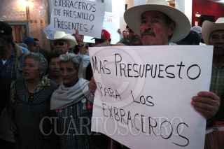 ZACATECAS, ZACATECAS, 29SEPTIEMBRE2010.- Ex braceros integrantes de la organización BraceroProa realizaron una protesta en las instalaciones del congreso local para exigir que intercedan por ellos frente al Gobierno Federal, para pedir que ya se les pague los 30 mil pesos de apoyo a exbraceros. Además, pidieron que se reabran la oficinas receptoras y se integre a los ex braceros que perdieron sus micas y así a estas personas se les reconozcan sus derechos. FOTO: ADOLFO VLADIMIR VALTIERRA/CUARTOSCURO.COM