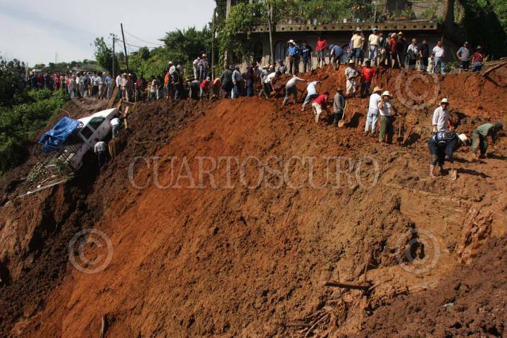 SANTA MARIA TLAHUITOLTELPEC, OAXACA, 29SEPTIEMBRE2010.- Centenares de habitantes del municipio de Santa Maria Tlahuitoltepec junto con elementos de la SEDENA, SEMAR, seguridad pública de Oaxaca, y elementos de protección civil, trabajan buscando los cuerpos de personas que fueron sepultadas por un alud que devastó viviendas debido al reblandecimiento de la tierra. FOTO: SAÚL LÓPEZ/CUARTOSCURO.COM