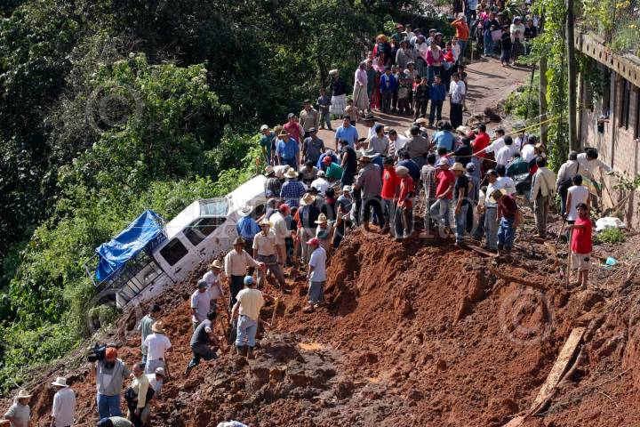 SANTA MARIA TLAHUITOLTELPEC, OAXACA, 29SEPTIEMBRE2010.- Centenares de habitantes del municipio de Santa Maria Tlahuitoltepec junto con elementos de la SEDENA, SEMAR, seguridad pública de Oaxaca, y elementos de protección civil, trabajan buscando los cuerpos de personas que fueron sepultadas por un alud que devastó viviendas debido al reblandecimiento de la tierra. FOTO: SAÚL LÓPEZ/CUARTOSCURO.COM