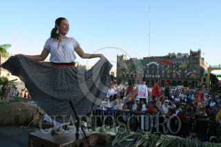 MÉXICO, D.F., 29SEPTIEMBRE2010.- Como parte de las actividades del día Nacional del Maíz, en el Zócalo Capitalino se realizaron una serie de bailes regionales ademas que se contó con la presencia de varios expertos en el tema con la finalidad que la gente acudiera a ser parte de los festejos. FOTO: ENRIQUE ORDÓÑEZ/CUARTOSCURO.COM