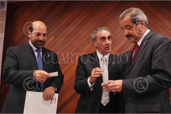MÉXICO, D.F., 01OCTUBRE2010.- Hector Slim Seade, director de Teléfonos de México junto a Patrick Slim Domit, Jose Ángel Cordova Villalobos, Secretario de Salud Federal y Daniel Karam durante el inicio de la semana nacional de donación de órganos. FOTO: EDUARDO MORALES/CUARTOSCURO.COM