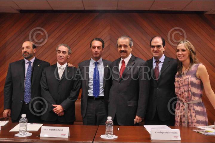 MÉXICO, D.F., 01OCTUBRE2010.- Hector Slim Seade, director de Teléfonos de México junto a Patrick Slim Domit, Jose Ángel Cordova Villalobos, Secretario de Salud Federal y Daniel Karam durante el inicio de la semana nacional de donación de órganos. FOTO: EDUARDO MORALES/CUARTOSCURO.COM