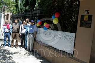 MÉXICO, D.F., 01OCTUBRE2010.- Un grupo de Ecuatorianos se manifestaron a las afueras de la Embajada de Ecuador en donde le brindaron su apoyo al presidente Rafael Correa. FOTO: RODOLFO ANGULO/CUARTOSCURO.COM