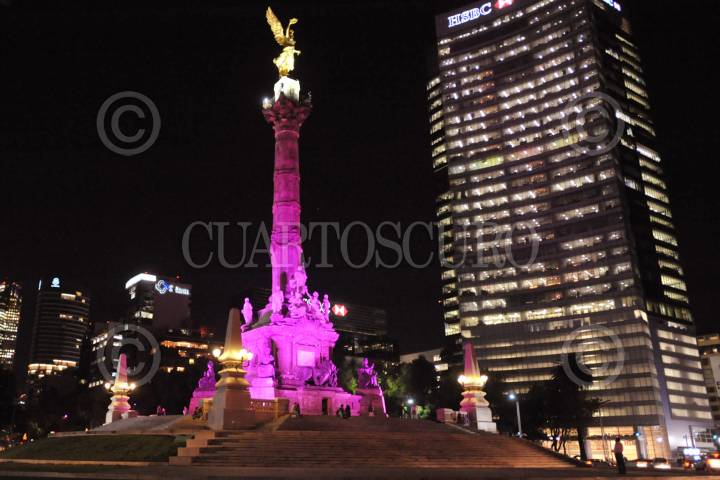 MÉXICO, D.F., 01OCTUBRE2010.- Se iluminó de color de rosa La Diana Cazadora como parte de la celebración del Día Internacional de la Lucha Contra el Cáncer de Mama, que es la principal causa de muerte por cáncer en las mujeres. FOTO: LUZ ACEVEDO/CUARTOSCURO.COM