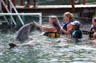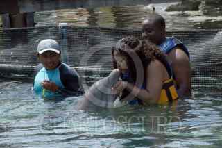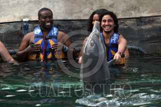 CANCÚN, QUINTANA ROO, 03OCTUBRE2010.- Turistas extranjeros disfrutan del nado con delfines en dolphin discovery en puerto aventuras en la riviera maya. FOTO: AMARANTA PRIETO/CUARTOSCURO.COM
