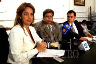 MEXDF14ABRIL2004.- En la Asamblea de Representantes, conferencia de prensa de los diputados locales del Grupo Parlamentario del PRD, Lorena Villavicencio y Rodolfo Francisco Covarrubias. FOTO: CUARTOSCURO.COM