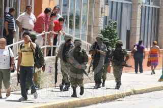 ACAPULCO, GUERRERO, 05OCTUBRE2010.- Un fuerte operativo se registró en la avenida Wilfrido Massieu en una zona centrica del puerto de Acapulco Guerrero cuando unos cien efectivos entre ejercito y policias federales custodiaban el hospital Magallanes donde segun versiones extra oficiales se encontraba internado y herido un alto mando del Policia Federal Preventiva (PFP) luego de un enfrentamiento con sicarios este mismo dia por la mañana. FOTO: JAVIER VERDIN/CUARTOSCURO.COM