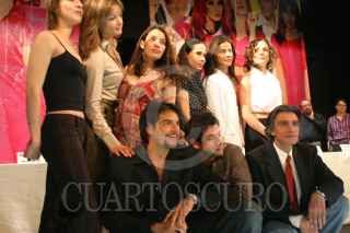México, D. F. 15 Abril 2004.- Eugenio Derbez, Silvia Eugenia Derbez, Susana González, Nailea Norbi y Arcelia Ramírez forman parte del eleco de la obra de teatro Opción Multiple. FOTO: Nelly Salas/CUARTSOCURO.COM