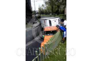 MÉXICO, D.F., 06OCTUBRE2010.- Un trailer quedó atorado en la aguja que incorpora de la avenida Fray Servando a la calzada de Tlalpan en la colonia Transito, Delegación Venustiano Carranza. En el lugar laboraron elementos del cuerpo de Bomberos para liberar dicho camión. FOTO: LUIS CARBAYO/CUARTOSCURO.COM