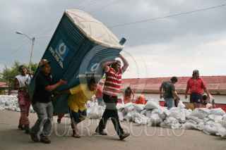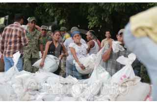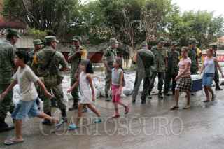 VILLAHERMOSA, TABASCO, 06OCTUBRE2010.- Habitantes de la ranchería Emiliano Zapata apuran sus pasos para tratar de evacuar la zona tras el colapso de un bordo de contención en las márgenes del río Carrizal. FOTO: MARCO POLO GUZMÁN HERNÁNDEZ/CUARTOSCURO.COM