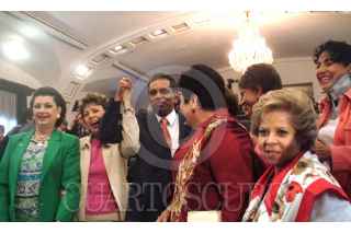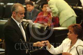 México D.F 15 Abril 2004.- El senador Fidel Herrera y candidato a la gobernatura de Veracruz por el PRI recibe el apoyo de sus compañeras legisladoras durante la sesión ordinaria del Senado. FOTO: Eunice Adorno/CUARTOSCURO.COM