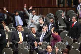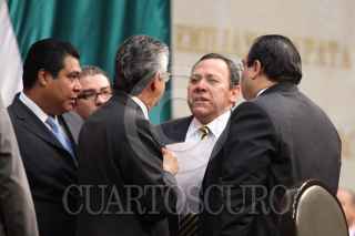 MÉXCO D.F., 07OCTUBRE2010.- Alejandro Encinas, Diputado del PRD, César Augusto Santigo, Diputado del PRI y Carlos Pérez Cuevas, Diputado del PAN,, en la sesión donde se voto la Ley General para Prevenir y Sancionar los Delitos en Materia de Secuestro, que fue aprobada en la Cámara de Diputados. FOTO: GUILLERMO PEREA/CUARTOSCURO.COM
