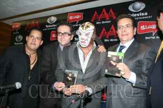 MÉXICO, D.F.,07CTUBRE2010.- Dorian Roldan, Fernando Rondón, Dr. Wagner, y Abraham Bautista, director de Slang, presentaron el videojuego "Héroes del Ring de la Triple AAA" en un famoso hotel de la Ciudad de México. FOTO: JACK GILLIAN/CUARTOSCURO.COM