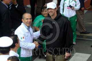 MÉXICO, D.F., 09OCTUBRE2010.- Michael Phelps, nadador estadounidense durante su participación en el Festival Olímpico del Bicentenario que se realiza sobre el Paseo de la Reforma y en el que se presentarán atletas mexicanos. FOTO: RODOLFO ANGULO/CUARTOSCURO.COM