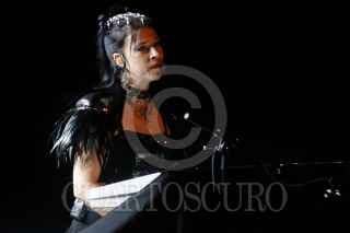 SAN ANDRES CHOLULA, PUEBLA, 10OCTUBRE2010.- El grupo alemán de Rock Gótico, Lacrimosa, se presentó la noche de ayer en concierto ante sus fieles seguidores poblanos que acudieron al auditorio del CCU para corear junto a los líderes de la banda Tilo Wolf y Anne Nurmi las canciones que los distingue como favoritos del movimiento gótico. FOTO: FRANCISCO GUASCO/CUARTOSCURO.COM
