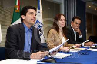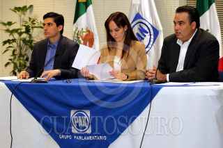 MÉXICO, D.F., 10OCTUBRE2010.- Los diputados del PAN, Felipe de Jesús Cantú, Gabriela Cuevas y Alfredo Rodríguez, ofrecieron una conferencia de prensa en la Cámara de Diputados. FOTO: IVAN MENDEZ/CUARTOSCURO.COM