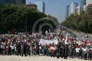 MÉXICO, D.F., 11OCTUBRE2010.- Integrantes del Sindicato Mexicano de Electricistas, marcharon sobre Paseo de la Reforma como parte de sus movilizaciones que han realizado al cumplirse un año de la extinción de dicha compañía. FOTO: ENRIQUE ORDÓÑEZ/CUARTOSCURO.COM