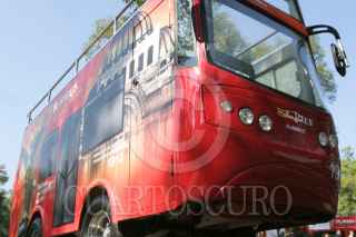 MÉXICO, D.F., 11OCTUBRE2010.- Se dio el banderazo de salida a los nuevos turibuses ecológicos que circularan por la ciudad. FOTO: ENRIQUE ORDÓÑEZ/CUARTOSCURO.COM
